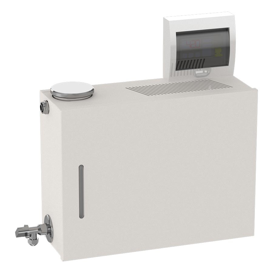 • Парогенератор накопительный, 1,6 кВт с встроенным цифровым пультом управления Прибор служит для создания пара путем закипания воды. В металлическом корпусе парогенератора находится бак для воды со съемной аромаемкостью в виде сеточки. Рядом располагается индикатор в виде трубки, благодаря которому осуществляется визуальный контроль за уровнем воды. Парогенератор накопительного типа работает от электричества и не требует подключения к водопроводу. Вода в него добавляется самостоятельно. Управление парогенератором осуществляется за счет встроенного пульта, с помощью которого устанавливается температура, мощность и время процедур парения. При превышении заданной температуры и низком уровне воды устройство отключается автоматически. Целебный пар поступает в фитобочку по паропроводу и насыщает организм человека полезными веществами.