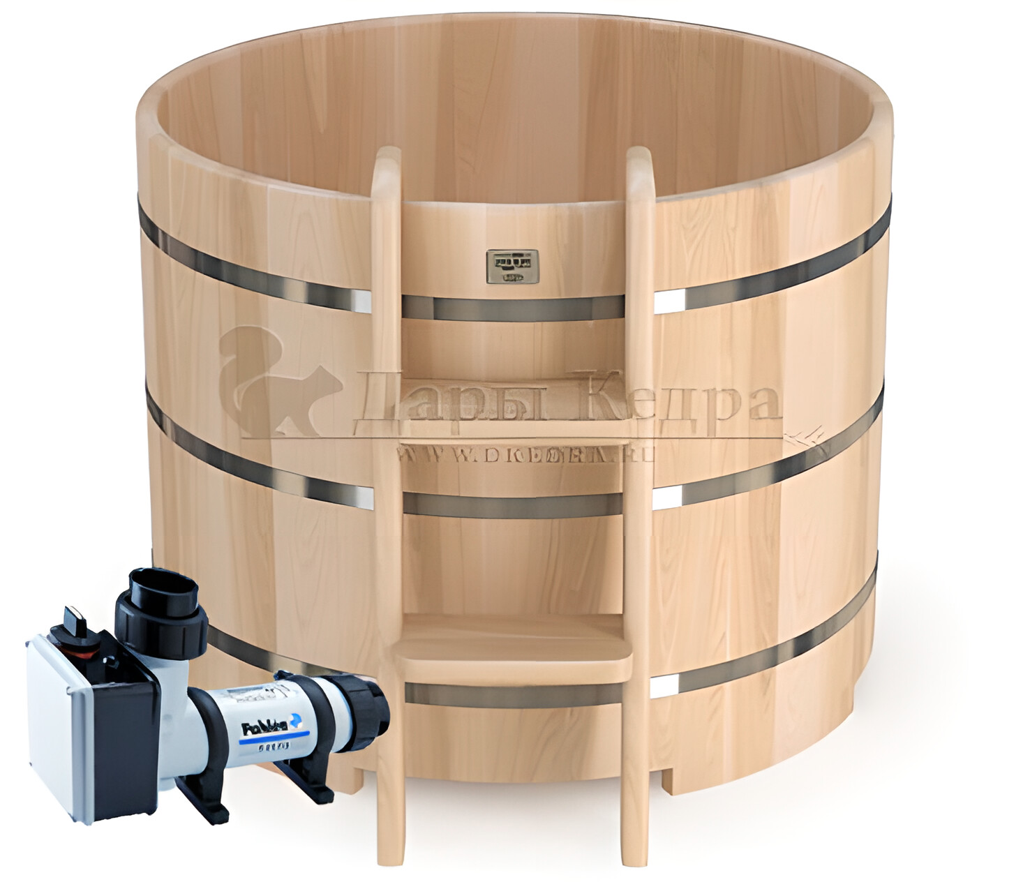 • Купель круглая (Фурако) из кедра с внешним электроподогревом Эта великолепная купель не просто подарит комфорт от водных процедур, но и станет отличной альтернативой джакузи! Пребывание в кедровой купели с электроподогревом очень полезно за счет воздействия на тело теплой воды, обогащенной полезными веществами из алтайского кедра. Необходимо помнить, что электроподогрев служит для поддержания необходимой температуры воды, налитой в купель, а не для ее нагрева! Преимущества овальной купели с пластиковой вставкой в том, что она не занимает много места и как правило её ставят внутрь помещения, поэтому стандартные размеры начинаются от 780 мм, это позволяет занести её в обычный дверной проём, не прибегая к разбору. Внутри кедровой купели с вставкой люди располагаются напротив друг-друга, зрительный контакт во время принятия процедуры делает общение более комфортным. Стандартные размеры от 1 до 2.2 метра, при этом ширина может доходить до 1200 мм. Пластиковая вставка упростит уход за купелью и увеличит срок её службы. Новинка! , новая технология термокрышек позволит защитить купель от условий неблагоприятной среды, а также сохранит необходимую температуру воды на долгое время.